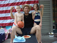 We continue to spend most of the weekends in the pool and they are now quite adept at swimming. A few weeks ago they were using arm floaties, but now they are swimming (sans floaties) all around the pool and are even able to pick up the diving sticks that we throw into the pool. Emma has some difficulty because she's light...and she can't seem to sink very well but she is able to fight her way down to the diving sticks in the shallow end. Lucas is able to pick them up from the bottom of the deep end. Simply amazing!!! I think we will put them on the local swim teams next year.