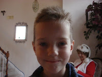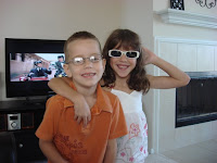 We took the kids to get their eyes checked before school started. I was concerned that Emma's strabismus (lazy eye) may cause her some issues. Well...her eyesight is fine...Lucas...not so much. He is farsighted (like me...go figure) and he has to wear glasses. I had to wear glasses starting when I was four and ended when I rebelliously refused to wear them at age twelve. He looks so cute in them...but I am also sad because I know how difficult it can be on a kid. He seems to like them and doesn't mind wearing them...so I'm happy about that.